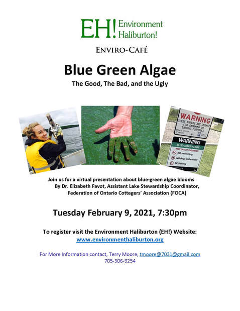 Environment Haliburton is hosting a virtual EnviroCafé on February 9th at 7:30pm that will feature Dr Elizabeth Favot, Assistant Lake Steward Coordinator for FOCA, speaking about blue-green algae blooms. Dr Norman Yan and Fleming College’s Barb Elliot will also be there…