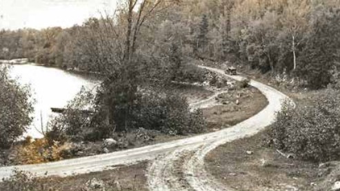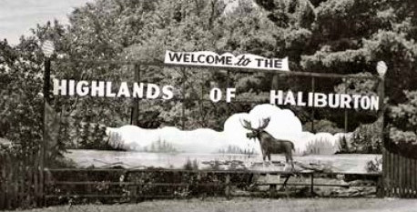 The welcome sign in this chapter’s masthead was erected in 1935 when Cameron Road was renamed Highway 35. It marked the southern boundary of the Highlands and was about one kilometer north of Miners Bay along Highway 35. The sign welcomed visitors to Haliburton until about 1970 when Highway 35 was straightened with the large, present day rock cut leading north out of Miners Bay.