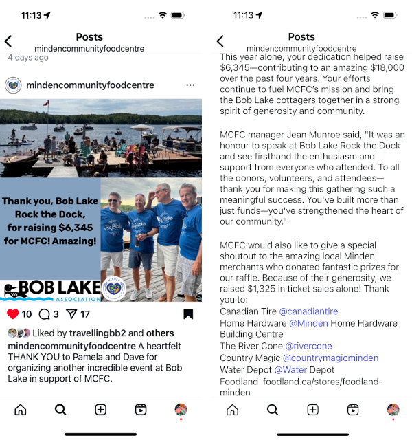 The Bo Blake Band entertained for over 2 hours with an all Canadian setlist (elbows up!) under perfect weather conditions! We also had Jean Munroe from the Minden Food Bank came out to personally thank the Bob Lake community for their generosity over the past four years! Check out their Instagram post below: