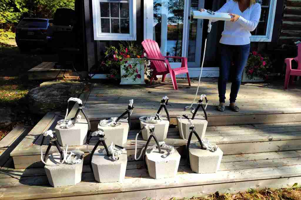 Each hazard marker is comprised of a cement base, a braided nylon length of rope, and a floating marker (see picture below). During the boating season, the floating markers will be Transport Canada (TC) approved hazard buoys (see picture below). Outside of the boating season, the hazard buoys will be replaced with a winter marker made from a 16-inch section of 2”x4” painted white plus a white sealed 4L plastic jug – preventing the buoys from being damaged over the winter conditions on the lake. Our goal is to have the normal hazard buoys installed on or before the May long weekend, and replaced with the winter markers on after the Thanksgiving long weekend. Each time the buoys are installed or removed, the location of the hazard bases will be validated against the published GPS locations, and relocated if required. This is necessary as there are several conditions that could cause the hazard base to move over the course of a season. A communication will be issued each time the hazard buoys are installed or removed, consisting of a posting on our website and an email to all Bob Lake property owners that the BLA has a record of.